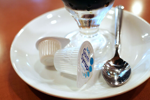 コーヒーゼリーの受け皿にはフレッシュとガムシロップ。そう、ここのコーヒーゼリー、ちゃんと甘くないコーヒーゼリーなんです。