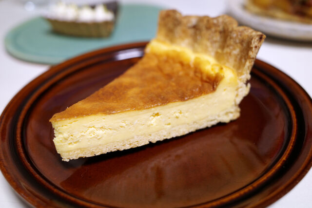 息子にはチーズタルト。城壁のようにそびえ立つタルト台のザクザクも彼のお気に入りポイント。