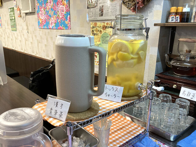 お茶とデトックスウォーターがフリーで飲めるみたい。