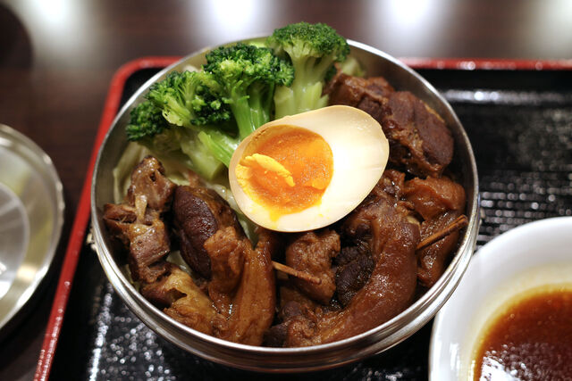 3種類ある台湾駅弁の中から台中名物だという豚角煮の乗った爌肉香腸便當と単品メニューから水餃子をオーダー。