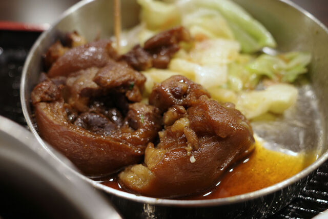 1段目のプレート、爌肉の下には蒸しキャベツ。