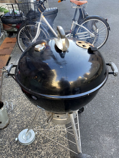 お店の前に設置されたグリルの中ではプルドポークがじっくりと焼かれていた。