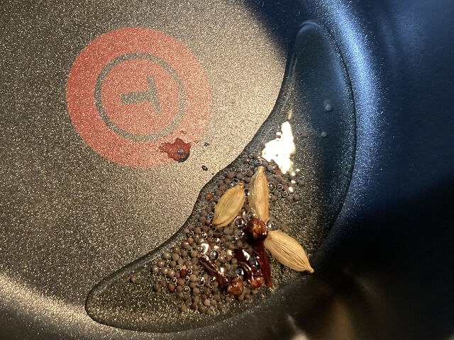 スタータースパイスはマスタードシード、クローブ、カルダモンなど