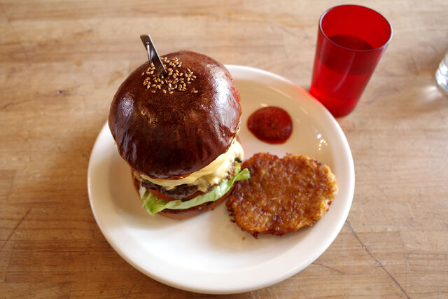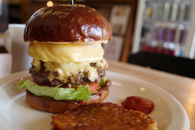 オーダーはその「ホンモノのチリチーズバーガー」をアボカドトッピングで。お供のドリンクはホットコーヒー。