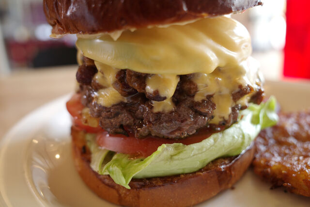 肉々しいビーフパティの上に2日間掛けて仕込まれたビーフ100%のチリビーンズ、アボカド、たっぷりチーズ。