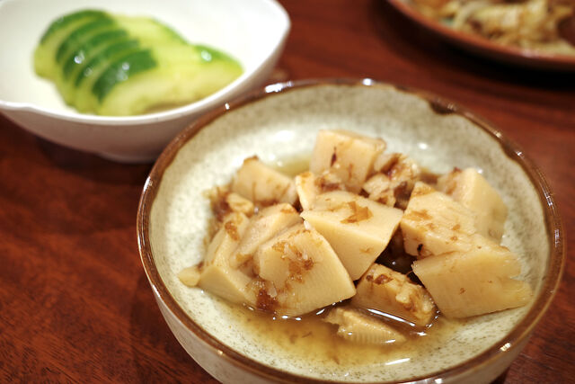 ホワイトボードメニューから自家製かりもり漬けに竹の子煮