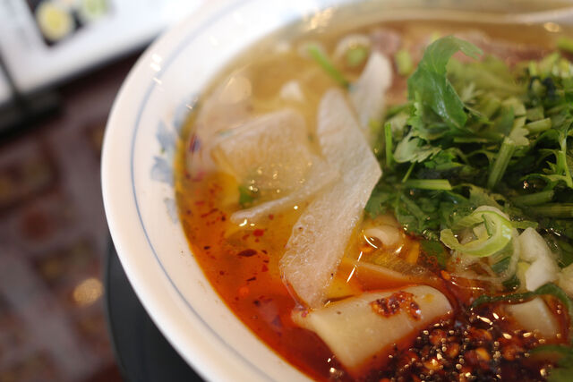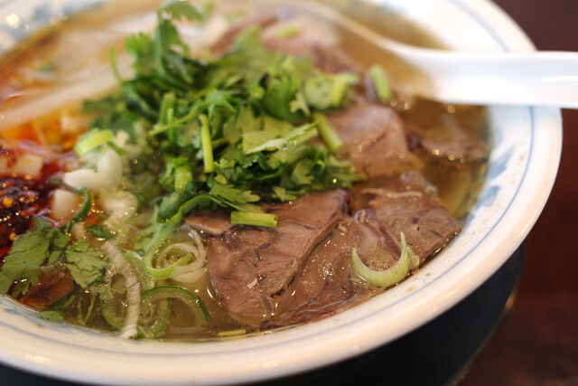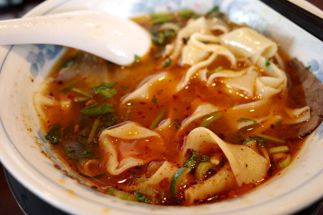蘭州ラーメンは牛骨ベースのスープにスパイスを効かせ牛肉、大根、辣油、パクチーなどを入れた蘭州市を中心に食べられている郷土料理。自分的には栄4丁目の「蘭州拉麺 李」で食べたのが最初かな。