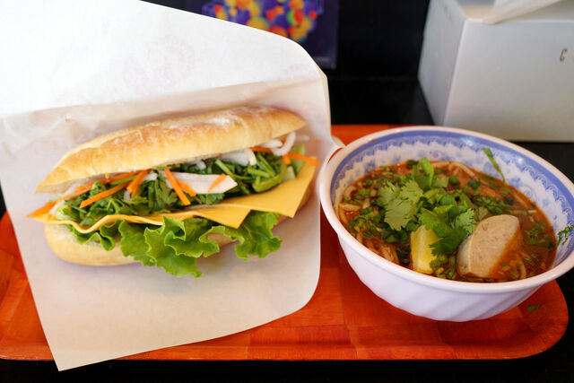 バインミーとベトナム中部の麺料理ブンボーフエをオーダー。