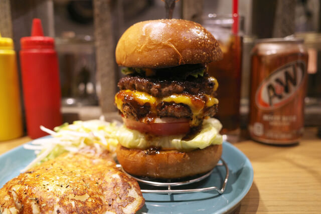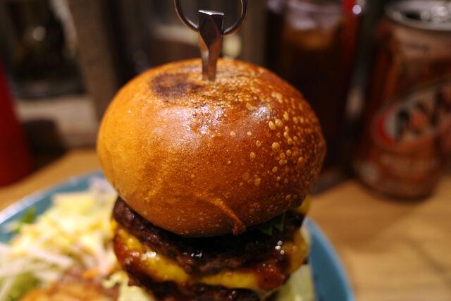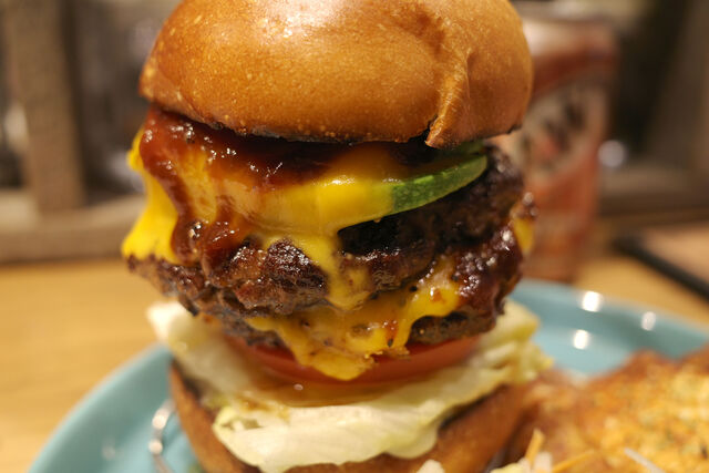 ダブルチーズバーガーはパティ×2チェダーチーズ×2。高さが増すぶんインパクトも大。肉々しさを思う存分堪能できちゃいます。
