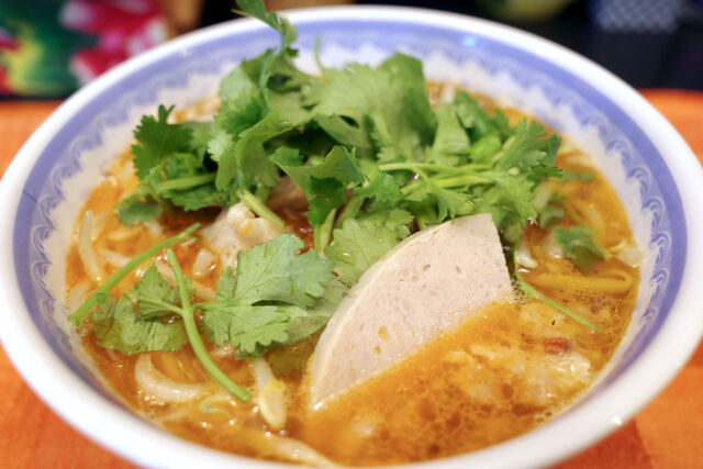 ブンボーフエの麺は平べったいフォー麺と違い丸い断面のブン麺。