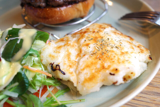 サイドの選べるポテトはマッシュポテトをチョイス。グリルで押し焼きしてあるのかな。焼き色が見た目からして食欲をそそる。