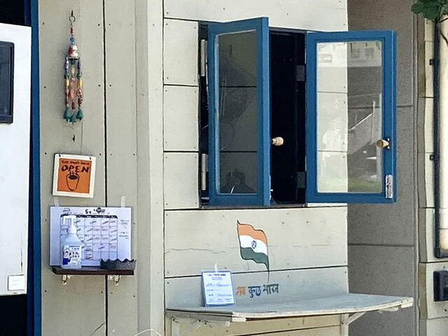 この青い小窓とインド国旗のイラストが目印のかわいいお店