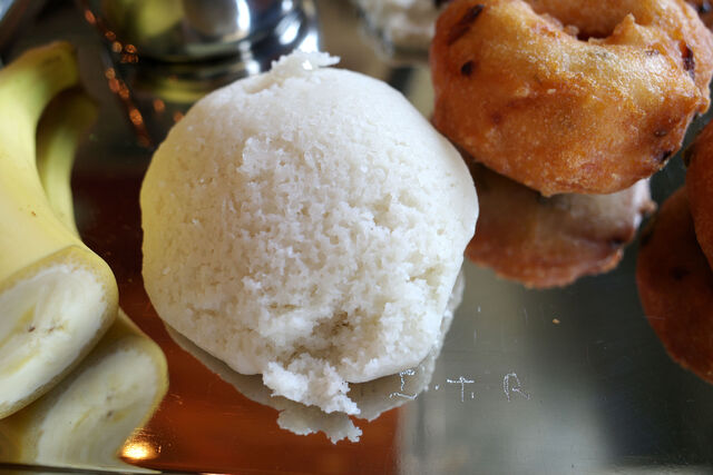 こちらはウラド豆と米で出来た南インドの発酵蒸しパン「イドゥリ」