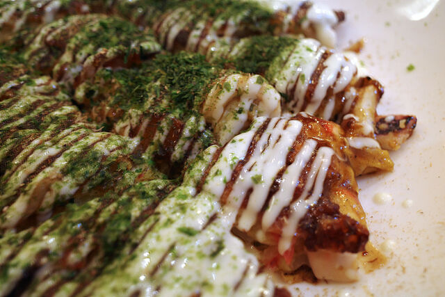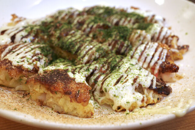 自分のオーダーはミックス(豚肉&イカ玉)だったっけかな。自分で焼くのでなく大将に焼いてもらいました。