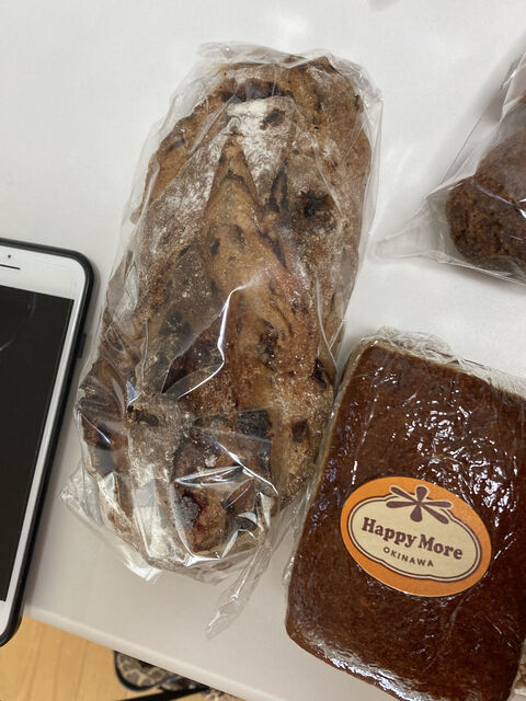 宜野湾のハッピーモア市場で購入した北中城村のパン屋さん”ときはや”のライ麦パン(クランベリーアーモンド)とハッピーモア市場オリジナルのバナナケーキ