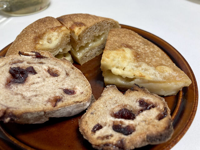 ときはやのクランベリーアーモンドのパンと水円の黒糖チーズパン