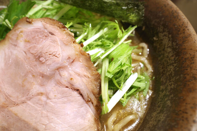 チャーシューの下には水菜がたっぷり。