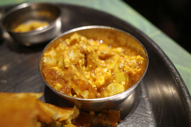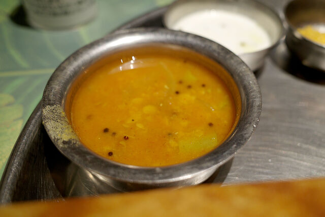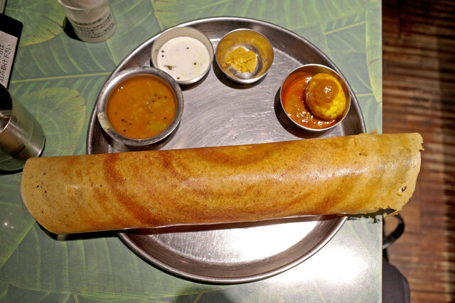 オーダーはマサラドーサの単品に、この日は選べるカレーに大好きなマサラエッグがあったのでそいつを追加。
