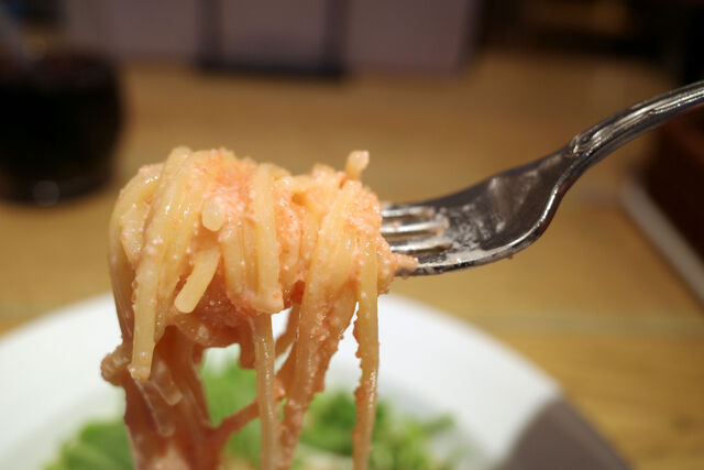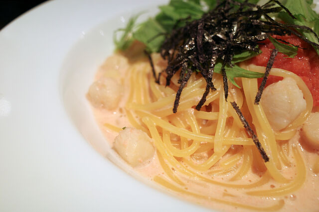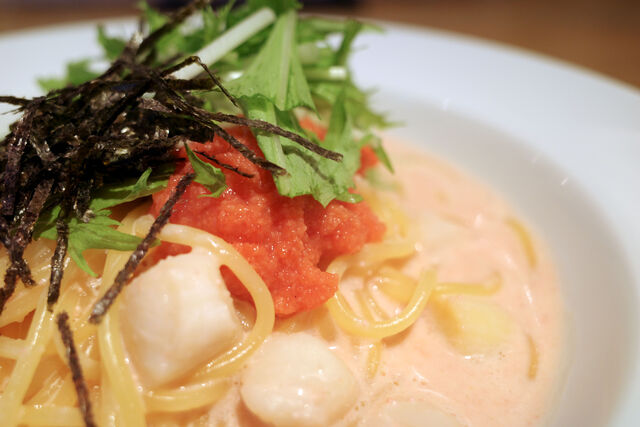 お邪魔した日(昨年12月12日)は明太子の日(山口県の明太子専門業者 前田海産が制定)とのことでオーダーは小柱と明太子のクリームソースのパスタ。
