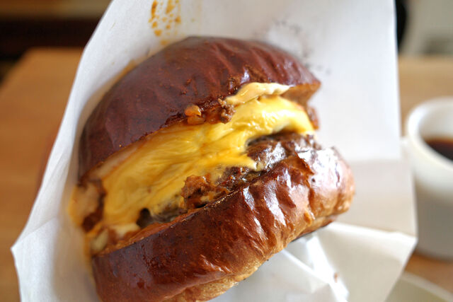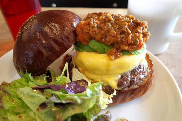 ミートソースもこのハンドチョップのビーフパティもどちらも肉々しくて食べ応えあり。