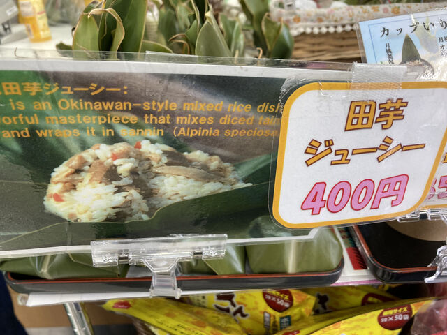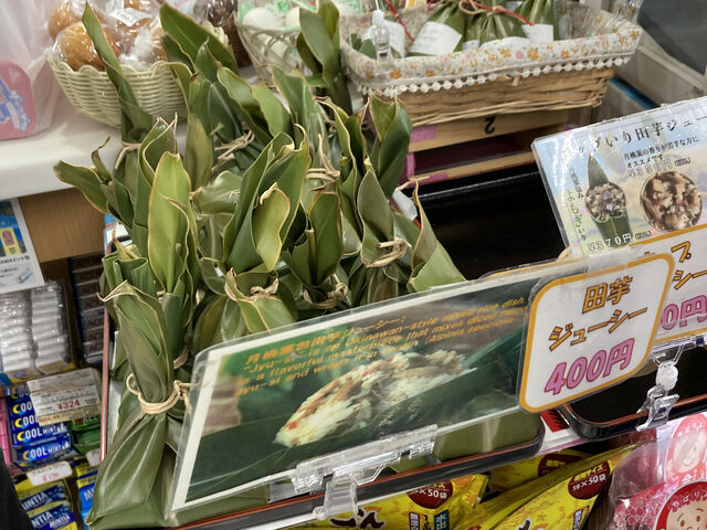 この、月桃の葉で包まれた田芋ジューシー。一昨年の年末に沖縄に行った際、伊芸サービスエリアで購入して食べてみたらめっちゃ美味しかったんだよね。