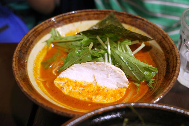ヨメさんは辛そうなやつのミニ。(←たぶんグルテンフリーまる唐そばだったと思う)