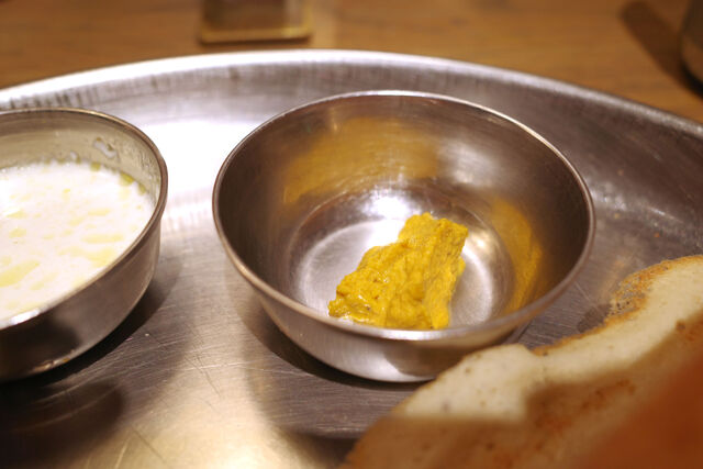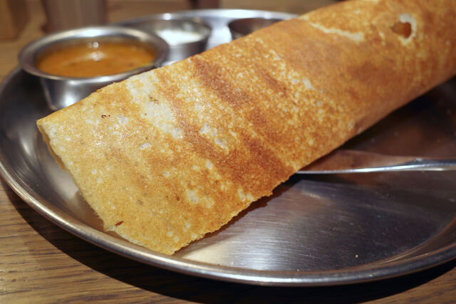 ドーサメニューにはドーサのほかにライスやビリヤニが一緒についてくる物や数種類のカレーが選べるスペシャルなプレートもあるけど今回オーダーしたのはシンプルにマサラドーサが楽しめる基本のプレート