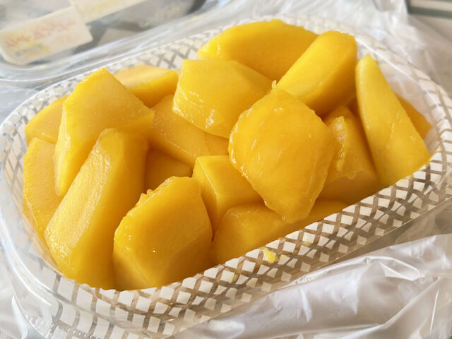 そして御菓子御殿の後に寄った恩納村の「おんなの駅なかゆくい市場」で恩納村産カットマンゴー。
