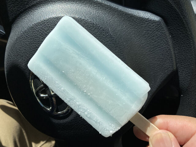 めちゃめちゃ暑かったのでみるみる溶けていく。良く見たら指までベッタベタだがね。笑