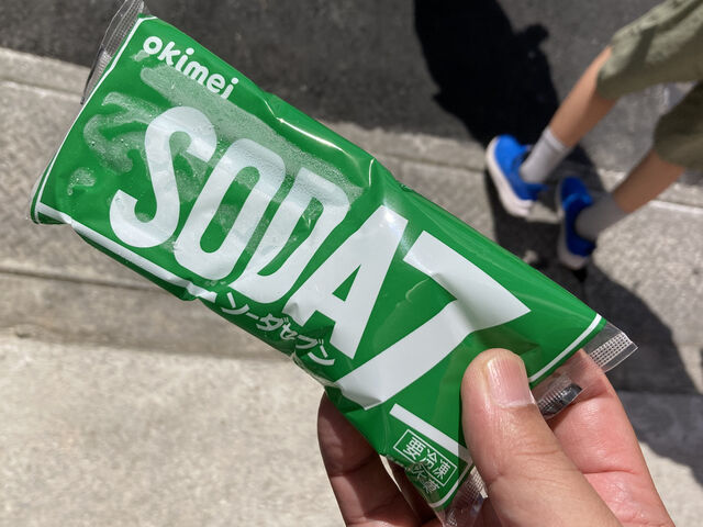 次は沖縄ご当地アイスキャンデー。前回のエントリで紹介したもとぶ町営市場の豆花屋さん「市場豆花店」の向かいにある「仲宗根ストアー」で購入したオキメイ(沖縄明治乳業)のソーダセブン。70年代を想像させるパッケージデザインが最高。