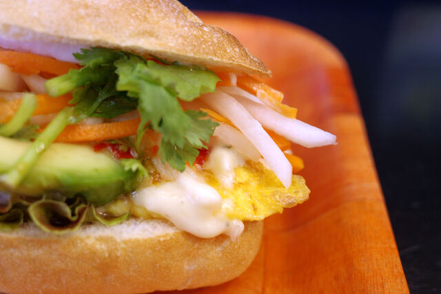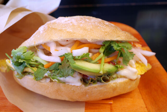 バインミーは最近メニューに復活した「オムレツ」のバインミーをアボカドトッピングで。