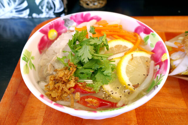 お邪魔したのは8月半ば。オーダーは夏らしい限定麺「冷製塩レモンフォー」とSサイズのバインミー。