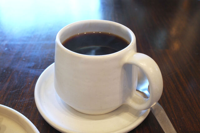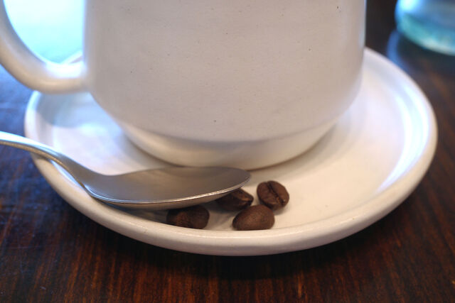 カップの脇には味見用なのかな?コーヒー豆も数粒。