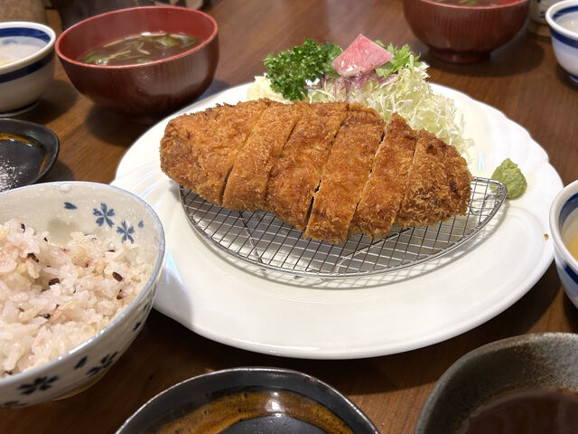 メインの厚切りロースかつ。この厚さなので揚げ時間も通常のとんかつより時間がかかるので急ぎの方には向いてないメニューだけどもし、お時間があるならぜひ食べてみて下さい。