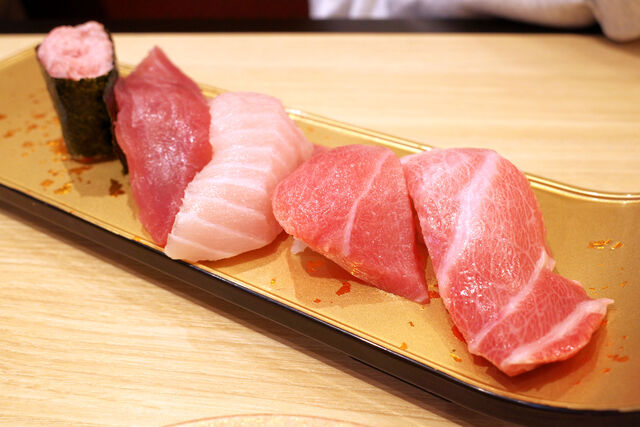息子が頼んだまぐろ6貫盛り。お品書きには「赤い彗星のTUNA(ツナ)」って書いてあったよ。笑