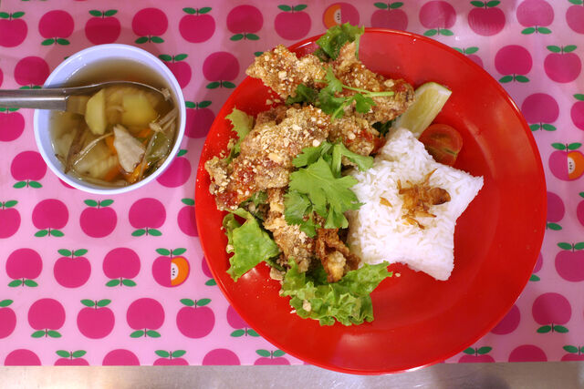 この日の日替わりはプーパッポンカレー風味のとり唐揚げ「ポンガイトード」