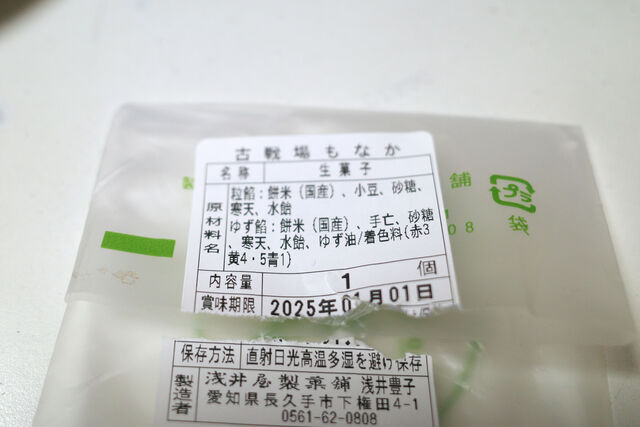 昨日の記事の続き。長久手温泉ござらっせで食事をした後、館内一階エントランスにある売店でデザート用に長久手の銘菓、浅井屋製菓舗の「古戦場もなか」を購入。