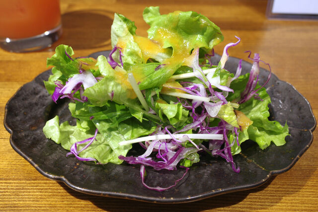 バーガーにはサラダとポテトがつくとのことでまずはサラダ。