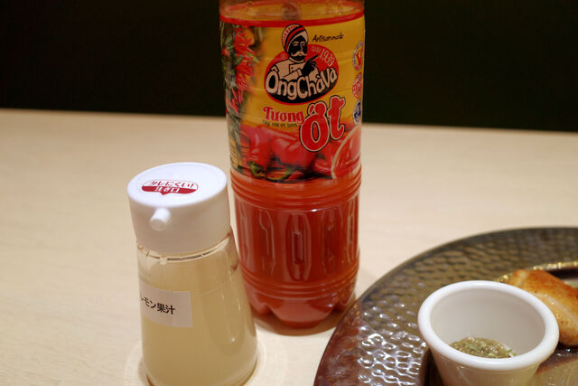味変アイテムはレモン果汁とベトナムのチリソース。
