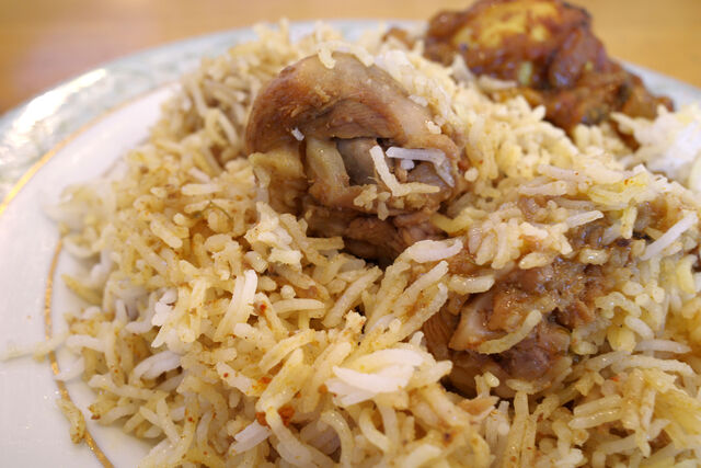 バングラデシュスタイルのチキンビリヤニ。見た目の華やかさはないけれど一口食べると芳醇なスパイスの風味が口の中に広がる。
