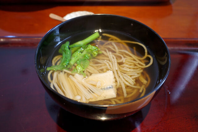 昨年1月に食べたのは筍と青菜のお蕎麦だったけど今回(2025年3月訪問)のはサヨリと菜花のお蕎麦でした。