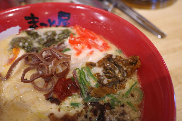 麺は細ストレート麺。牛白湯スープは豚骨スープに比べ匂いにクセがなく万人受けするラーメン。キクラゲのコリコリがいいアクセントに。