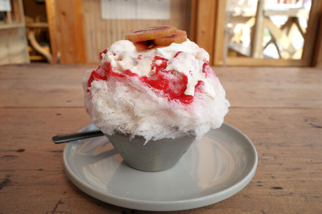 4月半ばの昼下がり。甚目寺の「しあわせ・かき氷店」で今シーズンの”かき氷初め”してきました。