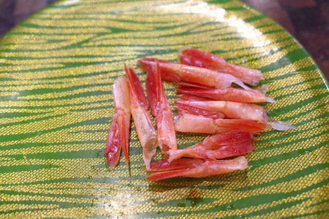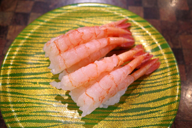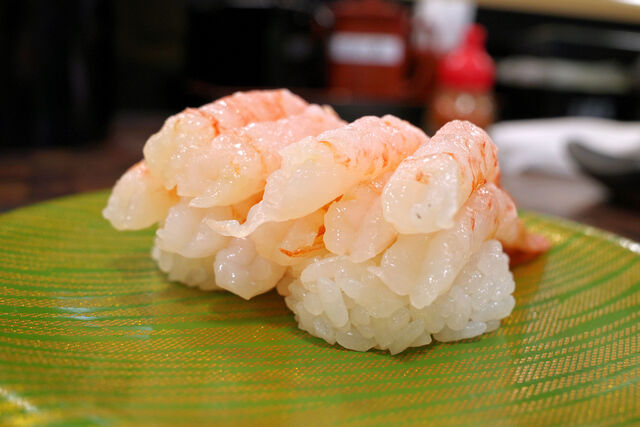 甘えびの盛りっぷりが最高。一貫に甘エビ5尾ずつ。しかも1尾1尾が大きいんだ。