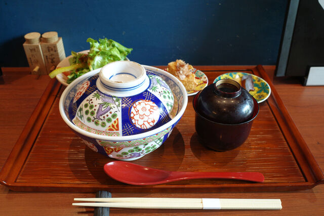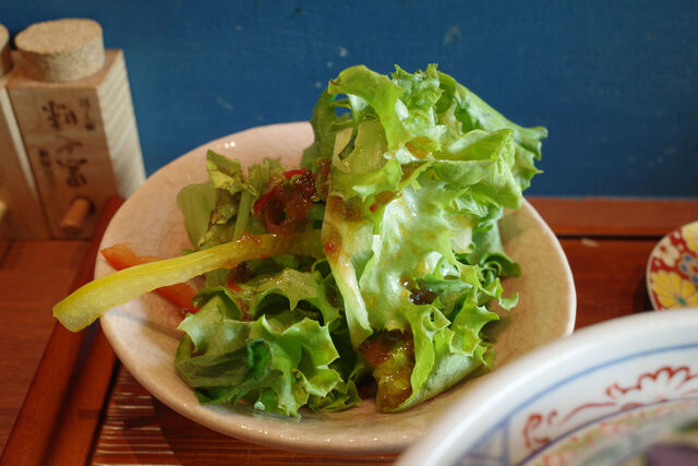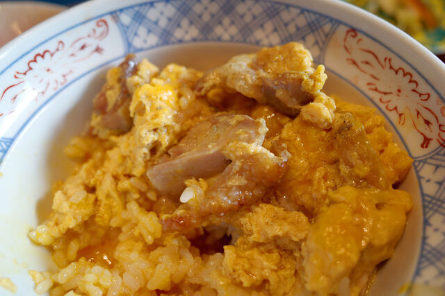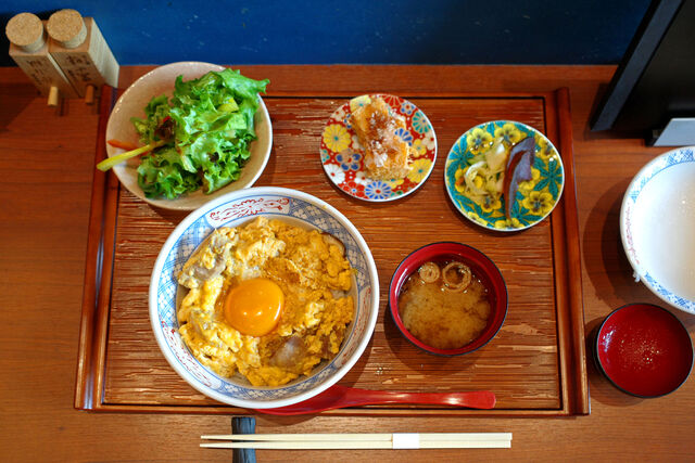 定食の内容は親子丼にサラダ、香物、味噌汁、