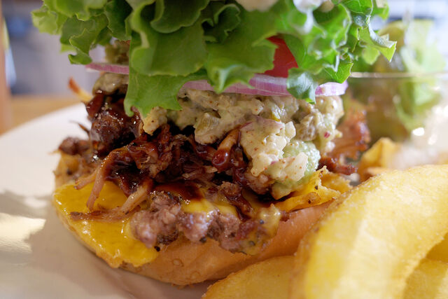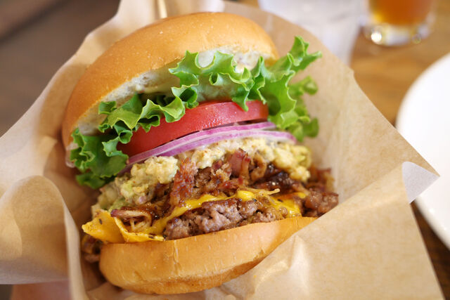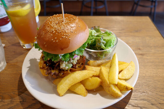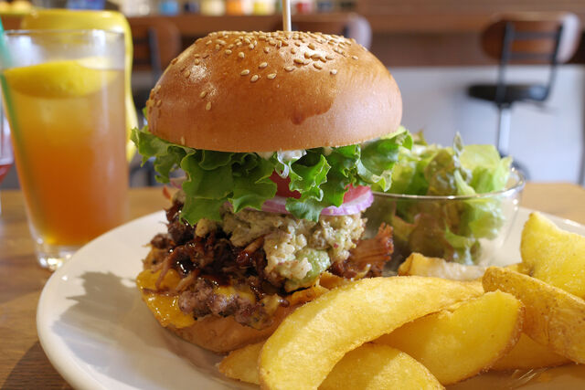 この日のオーダーはプルドポークバーガーのワカモレトッピング。