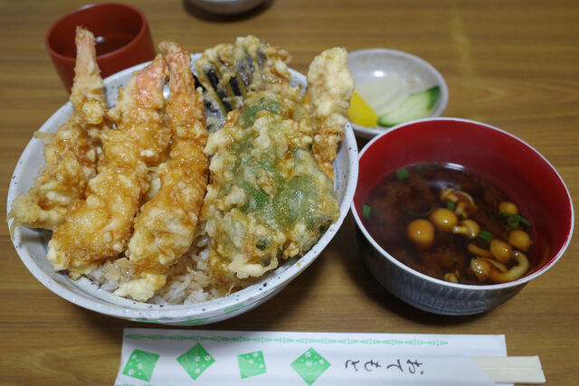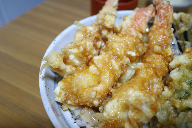 海老3本に野菜いろいろ。衣の感じもタレの味も好みな感じなんだよね。