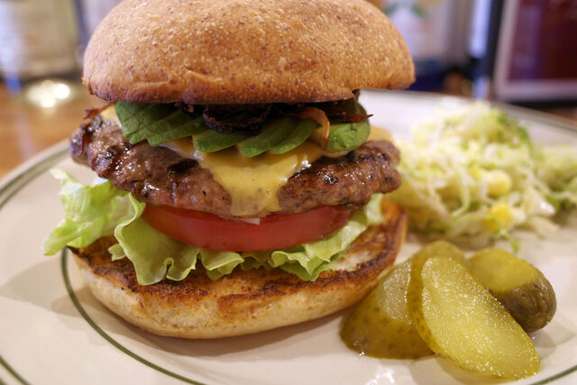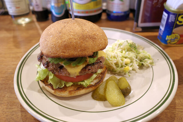 初訪問だった前回は店名のついた看板メニュー「HATスペシャル」をオーダー。今回はもうひとつのアボカド使用メニュー「カリフォルニアバーガー」をオーダー。