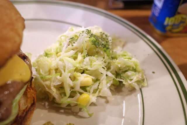 ポテトかコールスローサラダが選べるサイドはこの後に歓迎会を控えているので少しでも胃の負担を軽減しようということでコールスローサラダをチョイス。笑