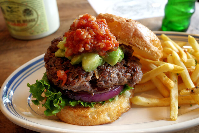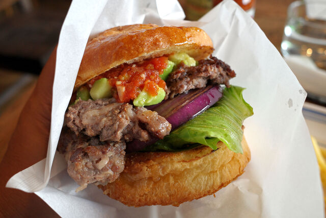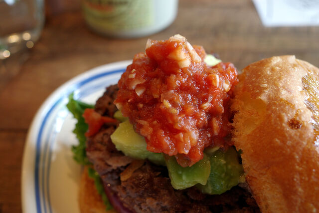 ビーフパティの上にはアボカド、そして爽やかな辛さのオリジナルサルサソース。